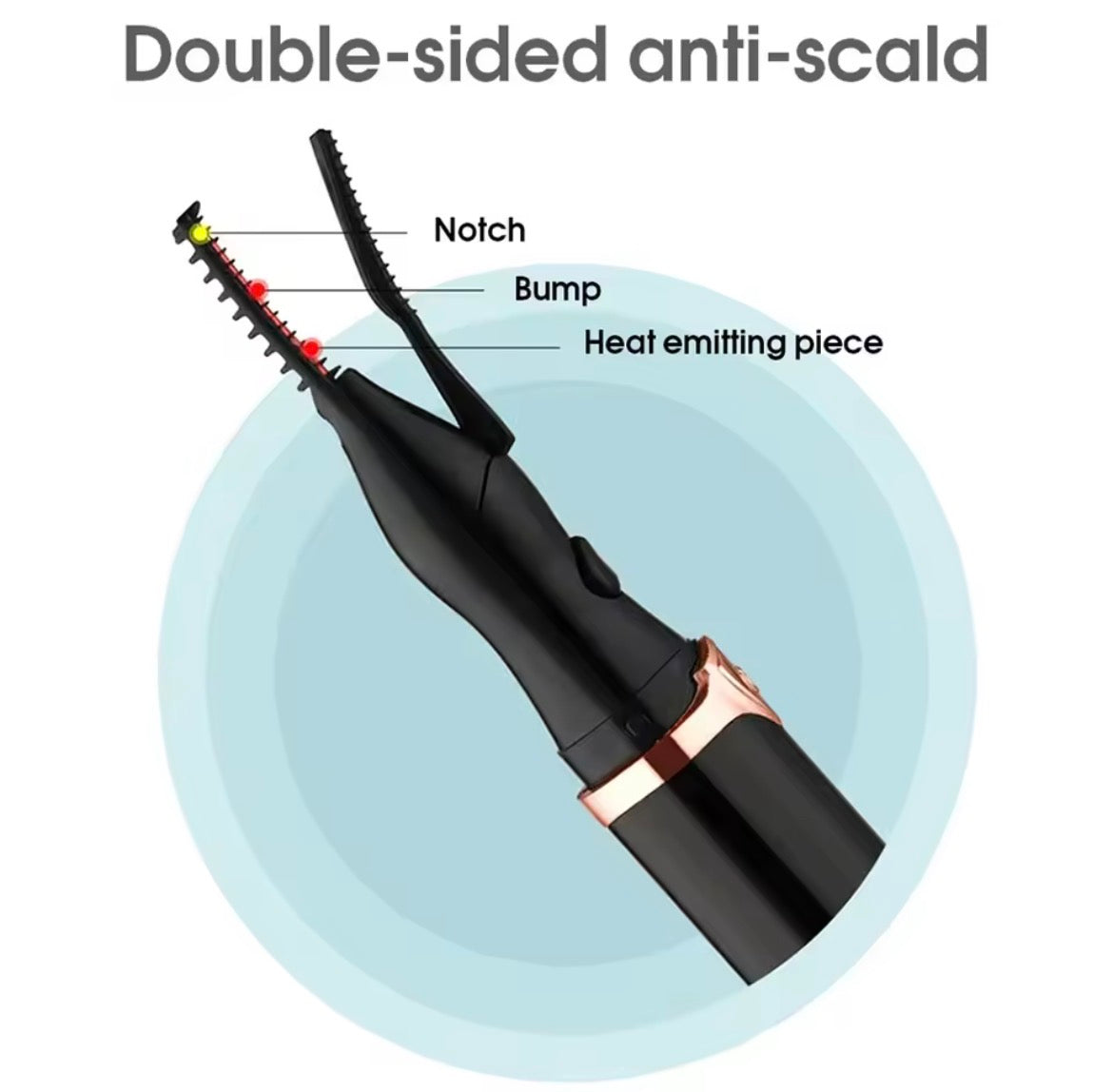 This 2-in-1 portable heated eyelash curler features a long-lasting curling comb and 3-speed temperature control. It uses USB power to deliver perfectly lifted, all-day curled lashes.