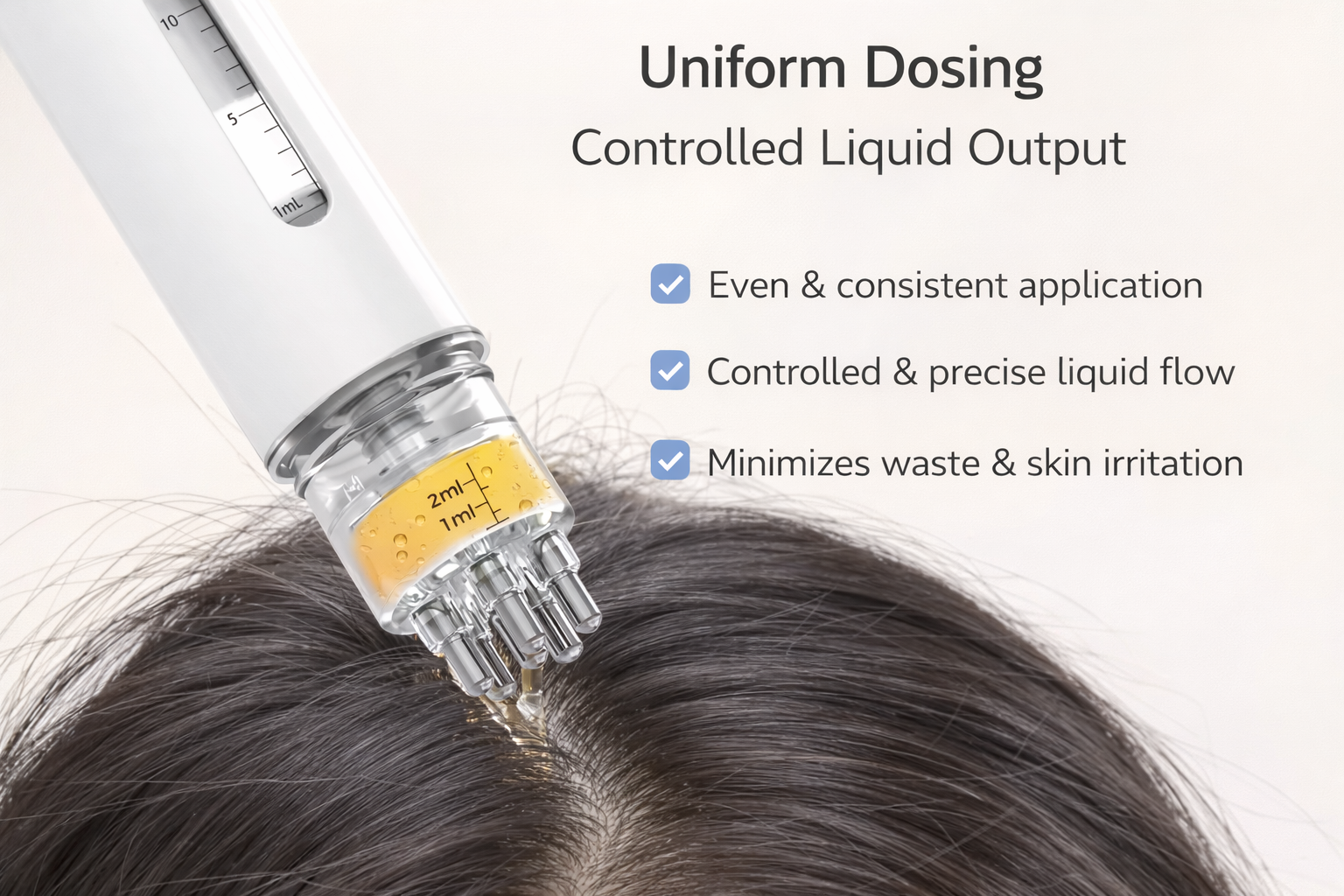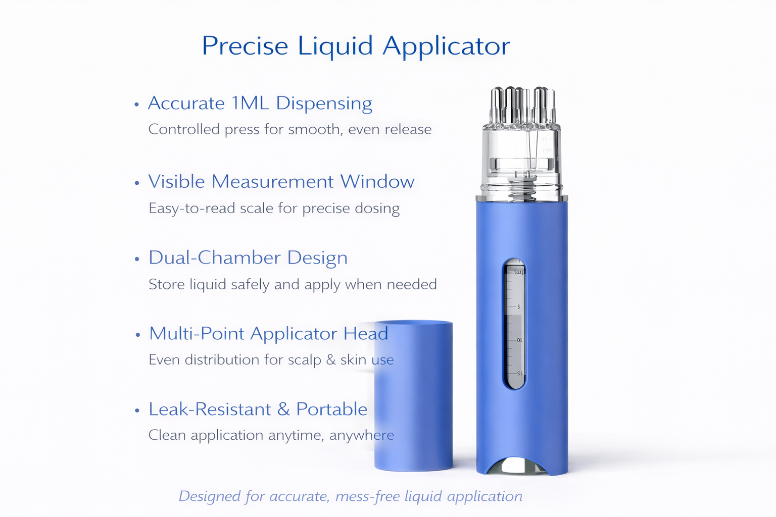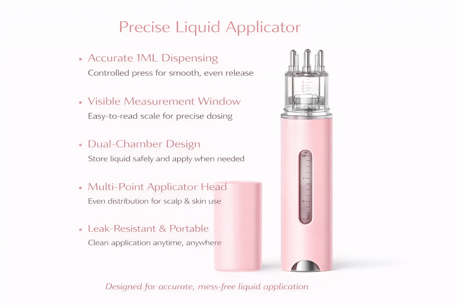 Apply oil directly to the scalp with zero mess and zero waste. This precision applicator delivers controlled, even dosing exactly where you need it—perfect for hair growth oils, serums, and treatments.