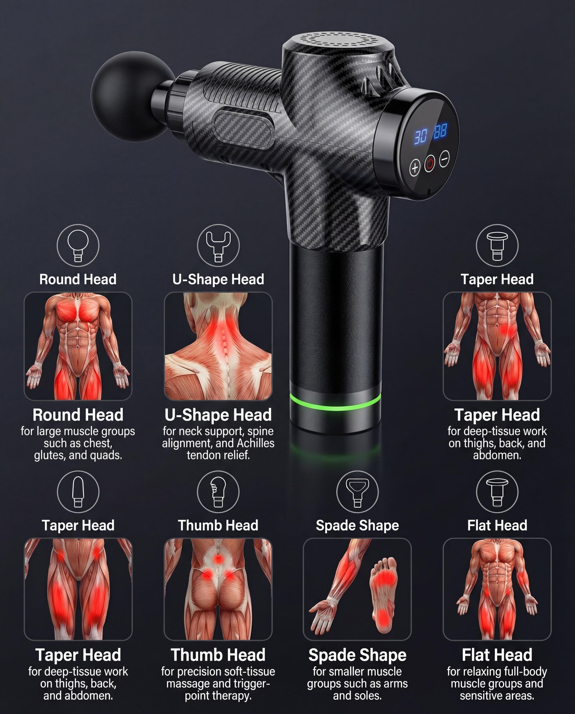 # Veridz Massage Gun Experience targeted muscle recovery with precision engineering designed for serious athletes and wellness enthusiasts. This compact massage gun delivers powerful percussive therapy to release tension, accelerate post-workout recovery, and improve circulation. Multiple intensity settings and interchangeable heads allow customization for different muscle groups—from deep tissue work to gentle lymphatic support. Whisper-quiet operation means you can recover without disruption. Built for durability and everyday use, it's the professional-grade tool your body deserves.