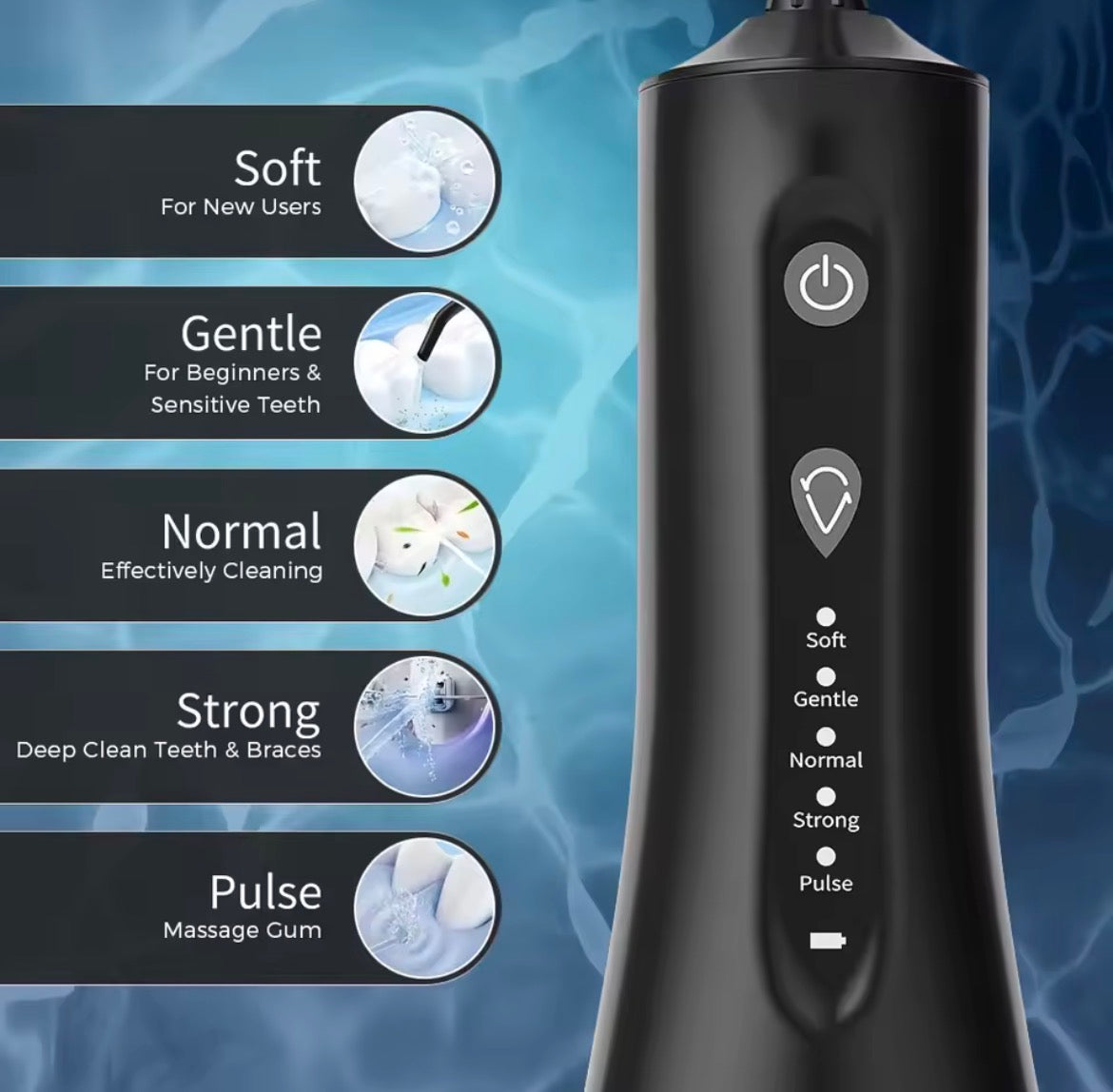 Improve your oral health with our Water Flosser Professional. With 5 settings and 5 tips, this electric power flosser effectively cleans teeth, gums, and braces, and is perfect for multiple users. Experience a 99.9% reduction in plaque and improve your overall dental care.